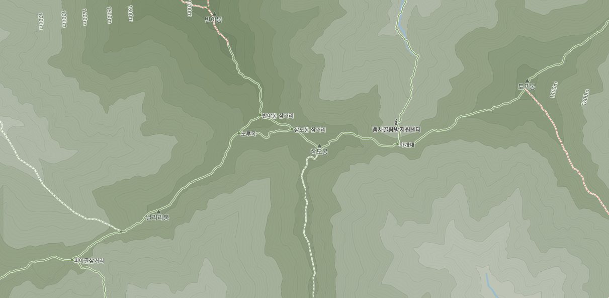 벽소령을 지나 하산을 시작하면 중간에 임도를 따라 중간에 다시 숲길을 통해 삼정까지 이릅니다.