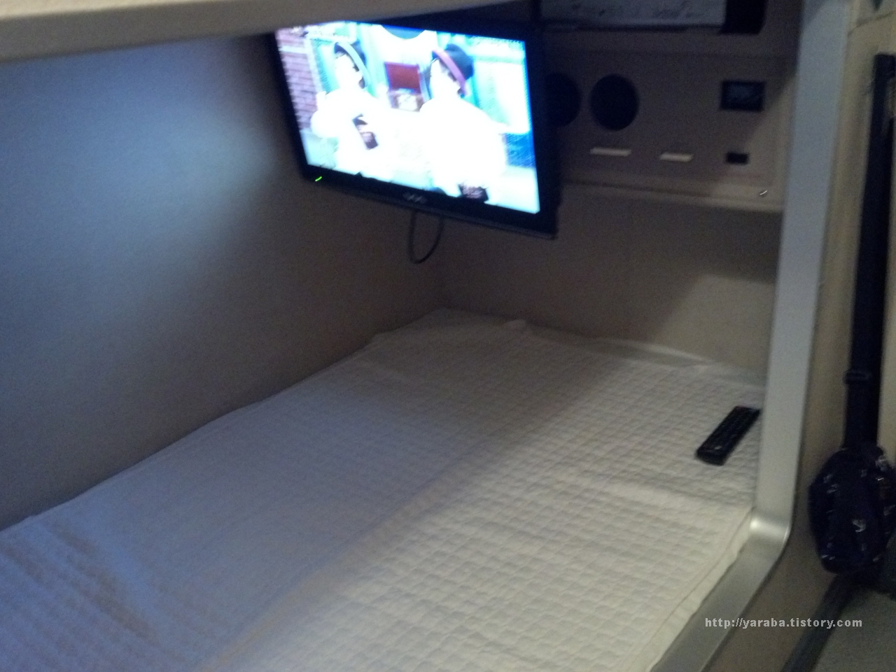 1인실이었지만 TV도 있어서 간식을 먹으면서 둘이서 도란도란 즐거운 시간을 가질 수도 있었습니다. 바로 옆 방의 1인실이 2층 침대고 저희는 1층이었지만 옆방의 소음이 들리지는 않았습니다. 오히려 출입문 바깥에서 들리는 소음이 문제이기는 했습니다. 넓지는 않았지만 둘이서 한침대에 누워서 편안하게 잠을 자며 제주로 건너갈 수 있었습니다.