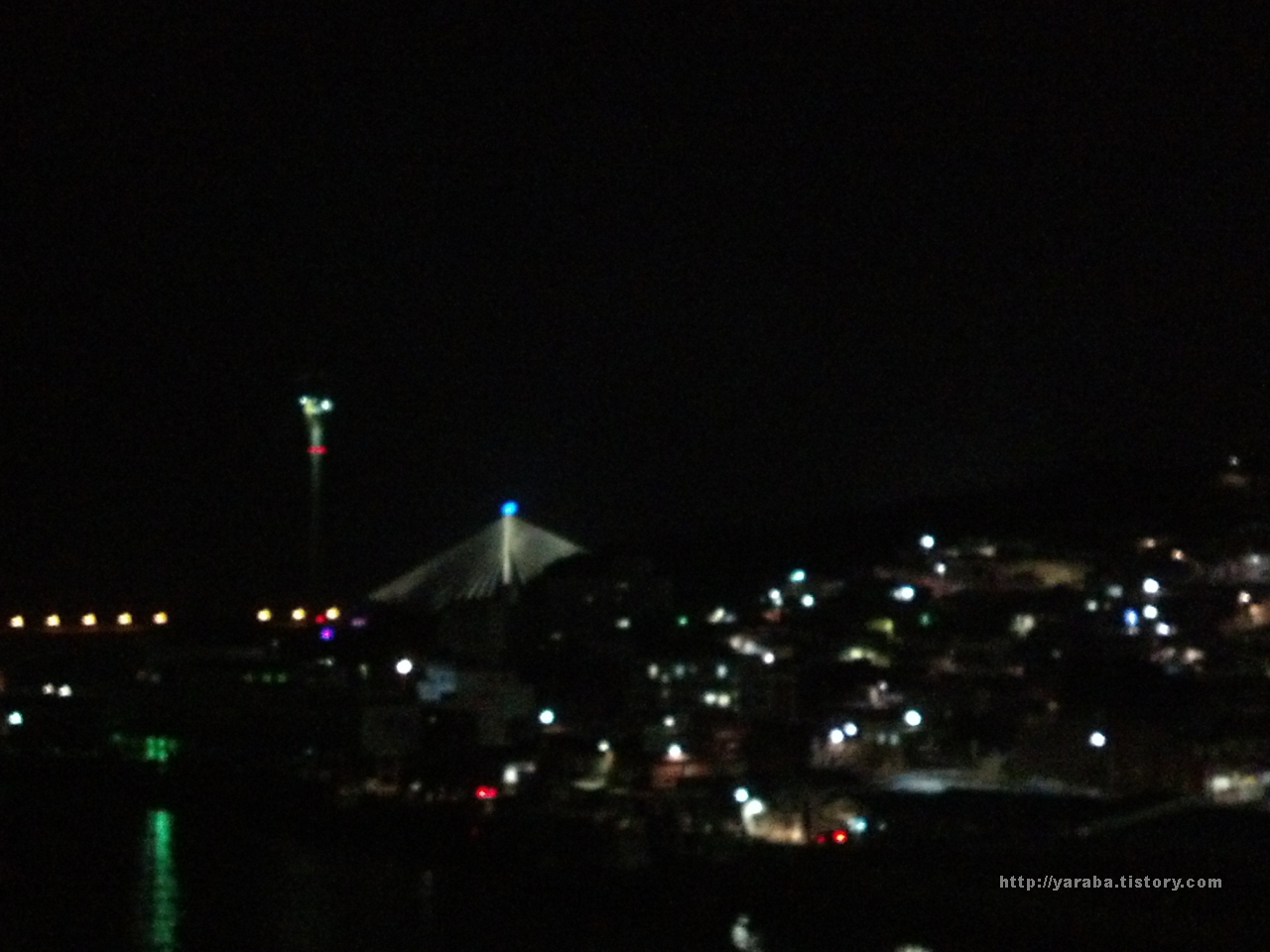 자정에 가까운 시각, 목포의 야경이 여행의 설레임으로 다가옵니다. 멀리 목포대교도 보입니다. 이 초대형 선박도 저 다리 아래를 통과해서 제주로 갑니다.
