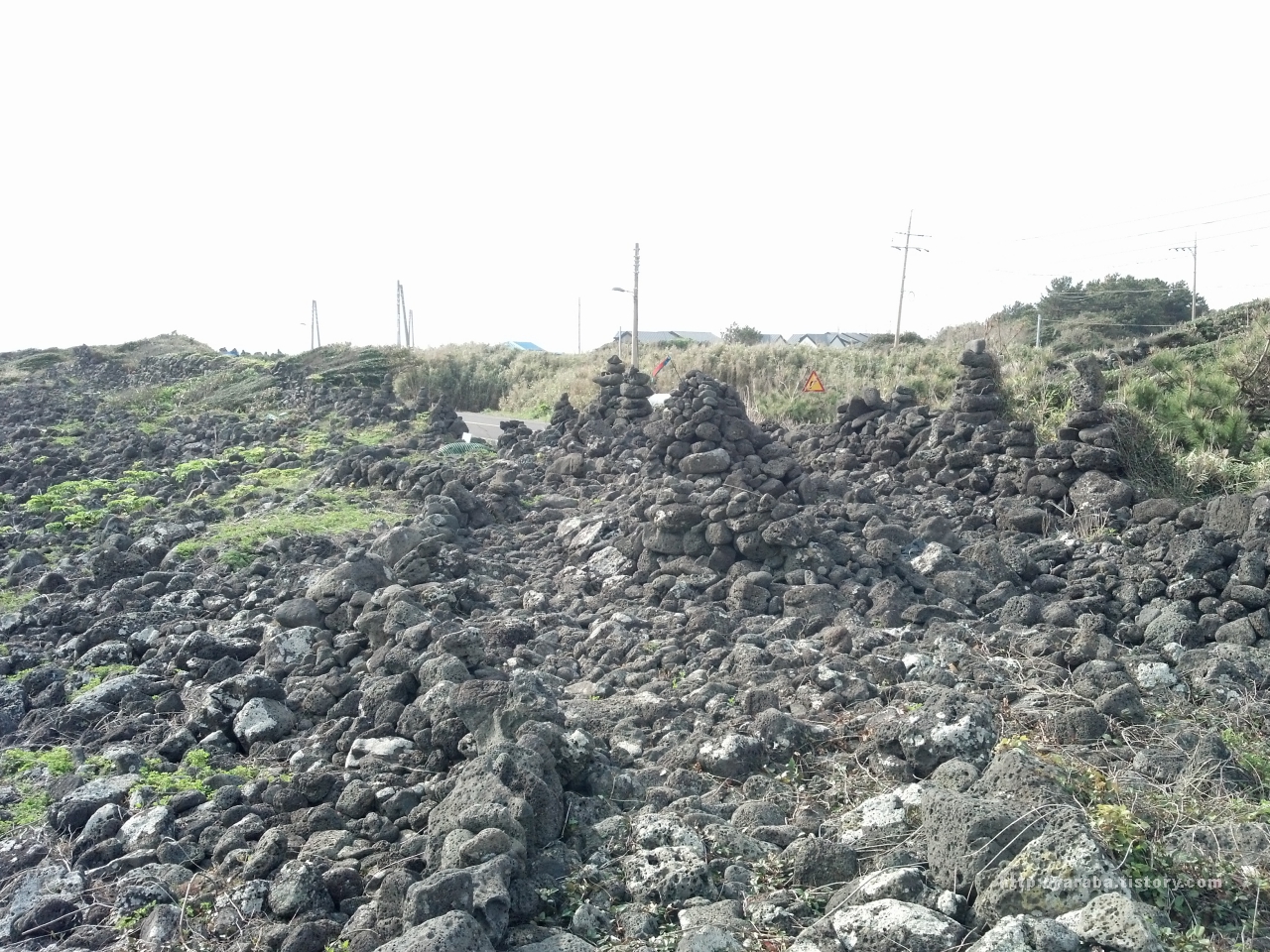 이런 돌 길은 잠시 후면 원래의 길과 합류합니다. 이런 돌길을 그냥 지나지 않고 돌 하나씩 쌓아서 탑을 만들어 놓은 올레꾼들의 흔적도 함께 합니다.