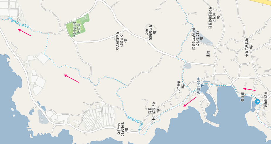 온평리 포구를 지나서 조금 지나면 3-A 코스와 3-B코스로 나뉘는데 저희는 오늘 올레 3코스에 이어서 올레 4코스까지 걸을 예정이므로 조금 수월한 경로인 3-B코스(14.4km)를 선택해서 걷습니다.