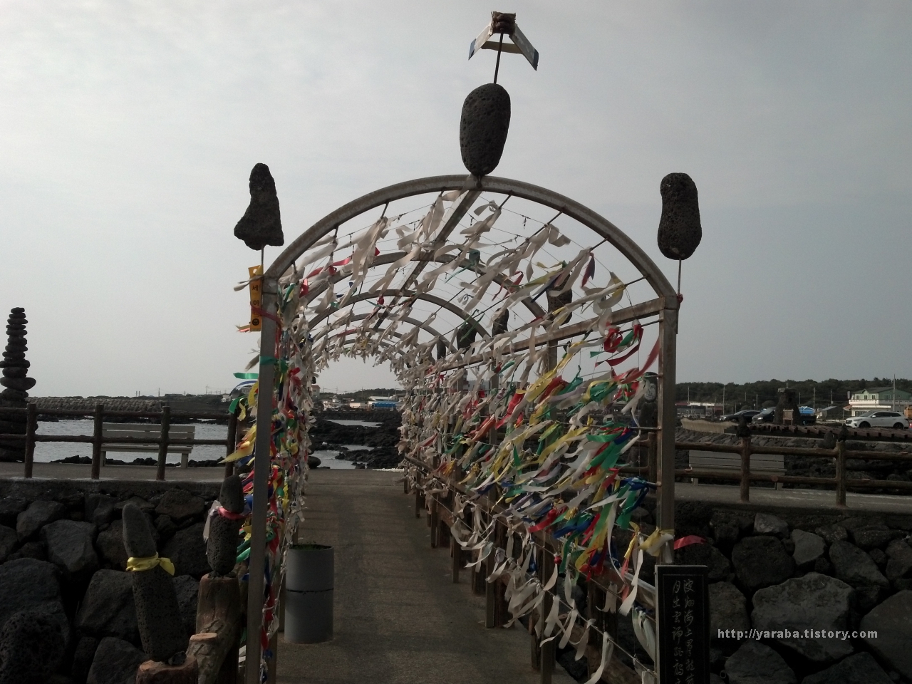 마치 남산에 있는 난간에 열쇠를 달아 놓듯이 자신의 바램을 담아 걸어 놓은 리본들입니다. 온평포구에 있는 정자에서는 이곳에 걸어 놓을 수 있는 리본을 무료로 제공하고 있었습니다.
