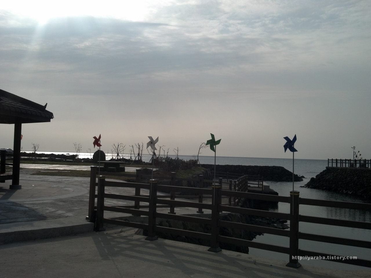 올레 3코스는 온평포구에서 시작합니다. 구름을 뚫고 비추이는 햇빛과 포구를 장식하고 있는 바람개비가 어울려 감탄을 자아내는 풍경을 선사합니다.