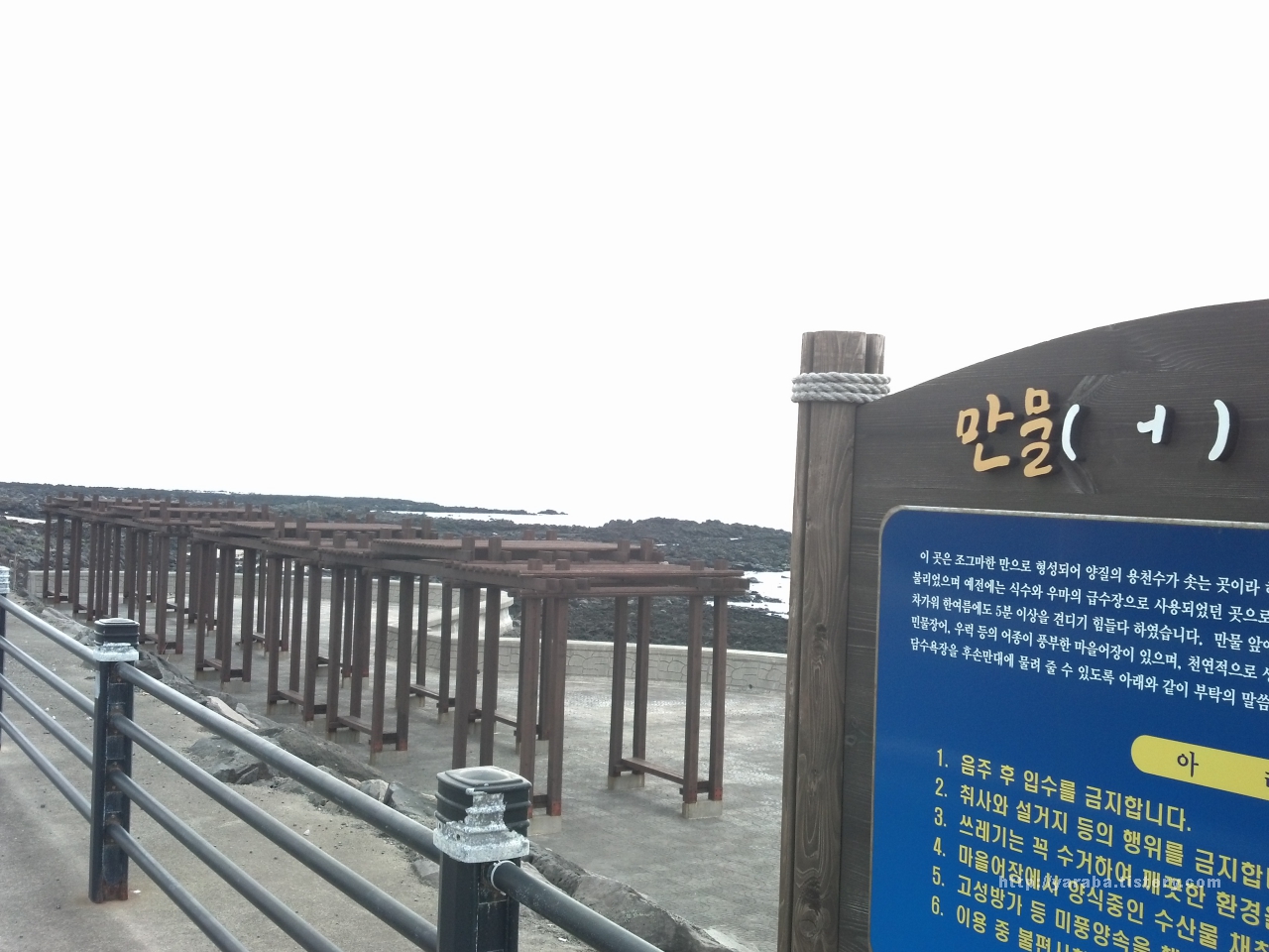 이곳은 조그마한 만으로 형성되어 양질의 용천수가 솟는 곳이라 하여 '만물'이라고 불리었으며 예전에는 식수와 우마의 급수장으로 사용되었던 곳으로 예로부터 물이 차가워 한여름에도 5분 이상을 견디기 힘들다 하였습니다. 만물 앞에는 다금바리와 민물장어, 우럭 등의 어종이 풍부한 마을 어장이 있으며, 천연적으로 생성된 아름다운 담수욕장을 후손 만대에 물려 줄 수 있도록.......