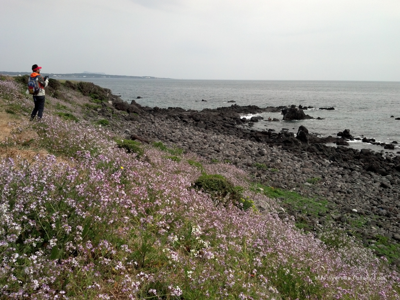 게다가 길가에 덤덤하게 꽃을 피우고 있는 갯무 꽃더미라도 만날라 치면 이 환상적인 풍경 앞에서 그 누가 발걸음을 멈추지 않을 수가 있을 까요?