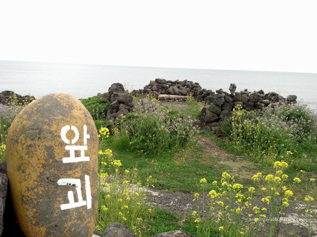 관광객들을 위한 포토존으로 만들어 놓은 앞괴. 유채꽃과 갯무꽃이 상춘객과 올레꾼 들의 한컷에 자연스러운 배경이 됩니다.