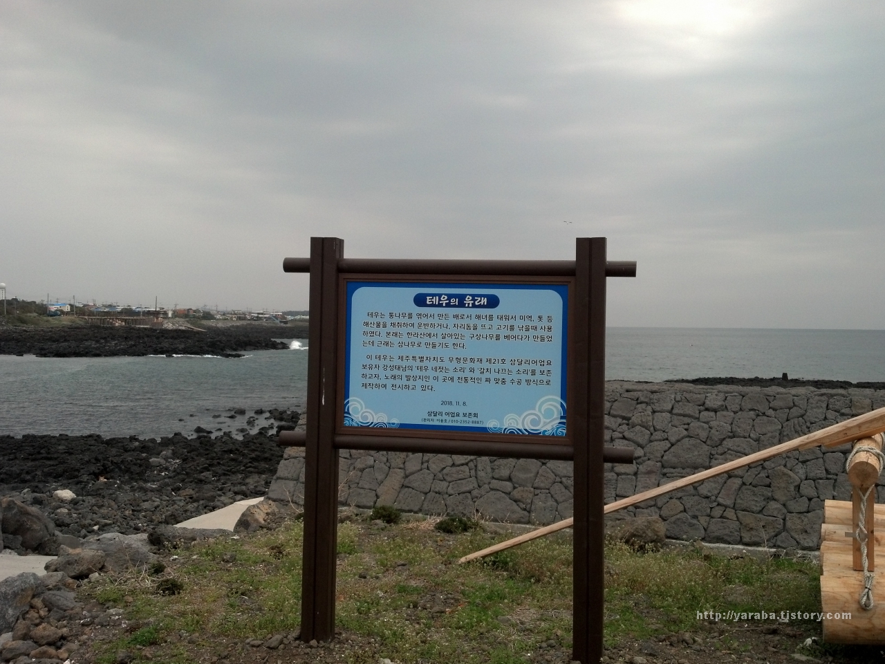 테우는 쇠소깍에 가면 승선 체험을 할 수 있지만 해녀들을 태워 미역, 톳을 채취하거나 운반할 때 사용하던 이곳 사람들의 생존과 관계있는 도구입니다. 고기를 낚을 때도 사용했다고 하네요.