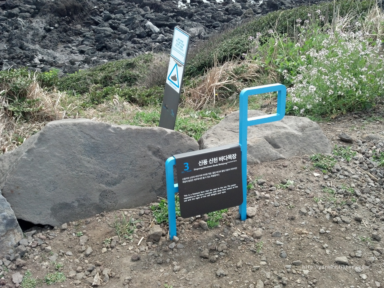 신풍 신천 바다 목장은 여행을 떠나기 전에는 그냥 널찍한 목장 하나를 지나는 모양이다. 하며 별 기대가 없었습니다. 그러나, 실제로 이곳을 지나 보니 그 어디에서도 볼 수 없는 환상적인 풍경이었습니다. 엄지 척!이었습니다. 아름다운 공간으로 올레길을 지나게 해 준 사람들에게 너무나 감사한 마음이 들었습니다. 한 노년의 올레꾼은 아예 바닥에 누워 셀카를 찍느라 여념이 없을 정도였습니다.