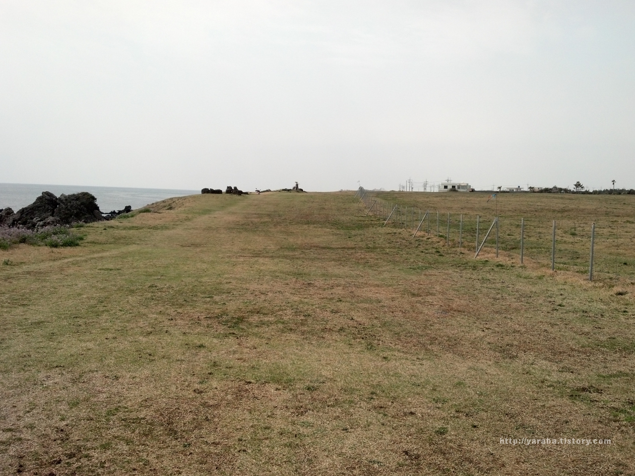 신천 목장을 지나는 올레길은 왼쪽은 현무암 해변, 오른쪽은 초장이 펼쳐지는 그 어디서도 만날 수 없는 풍경이 열립니다.