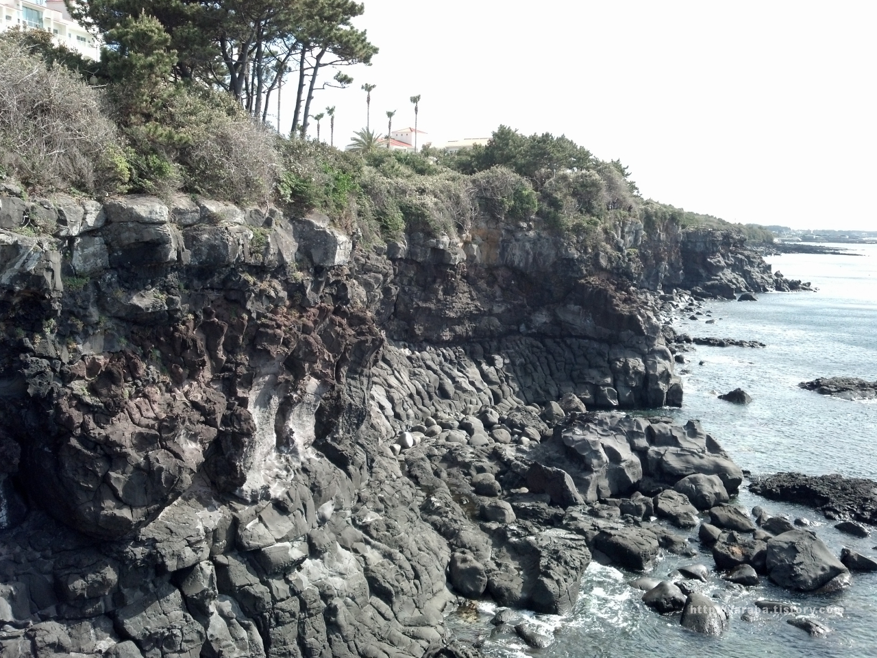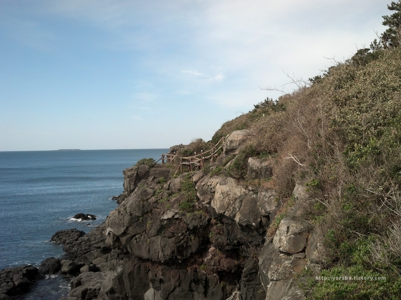 용암이 흘러내리다 뚝 끊어진 기암절벽에 감탄 연발입니다.