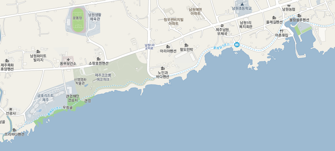 큰엉을 지나는 올레길은 코코몽 에코 파크와 신영 영화 박물관을 지나는데 일부 길은 이들이 허락해준 사유지를 지난다고 합니다.