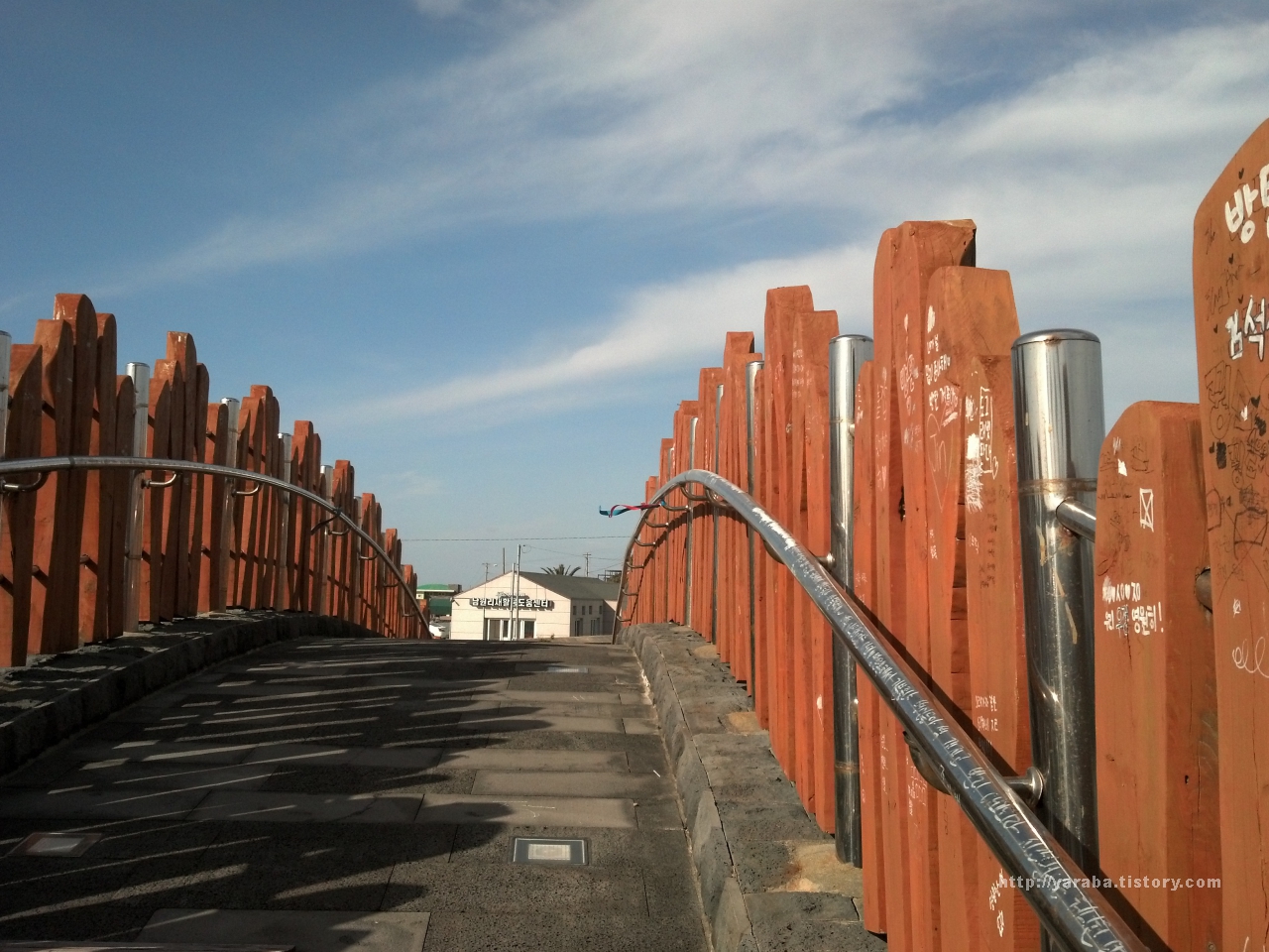 포구를 가로 지르는 인도교를 따라 본격적으로 올레길 걷기를 시작합니다. 굳이 이런 곳에 낙서를 해야 하는지......