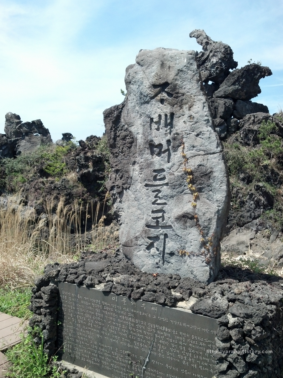 조배머들코지는 원래는 21m가 넘는 거암 괴석들이 용이 비상하는 형태로 있었던 곳으로 일제 때 파괴되었다가 1997년부터 복원하여 현재에 이르고 있다고 합니다. 비에 새겨진 원래의 암석이 파괴된 사연을 읽어 보면 그저 자신의 이익에 눈이 멀어 이웃과 나라, 민족은 뒷전인 졸부들의 행동이 예나 지금이나 마찬가지란 생각에 씁쓸한 마음입니다.