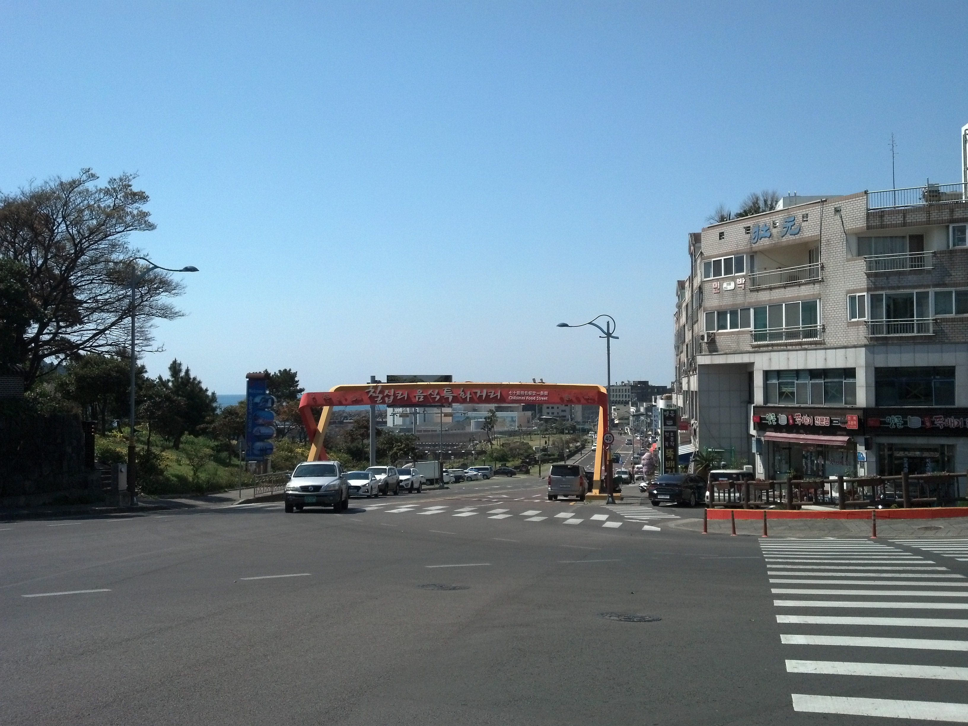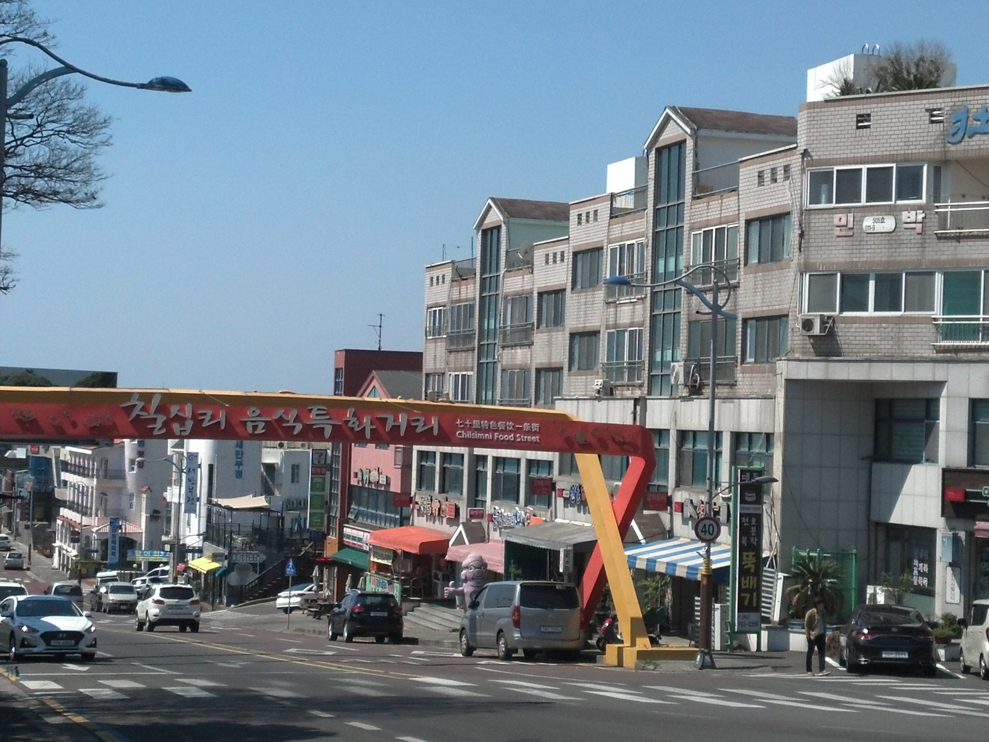 사진이 보이는 장소에서 천지연 광장까지 1.2Km에 이르는 거리가 "칠십리 음식 특화 거리"인데 앞쪽으로는 아름다운 해안 절경을 가지고 있는 서귀포의 다양한 향토 음식들을 맛볼 수 있는 곳이라 합니다.