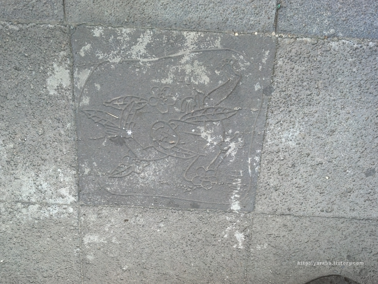 이중섭의 작품을 소재로 만든 바닥 블럭. 이중섭은 작품 소재로 소, 닭, 아이, 가족 등의 향토적이고 자전적인 것들을 선택한 특징이 있습니다.