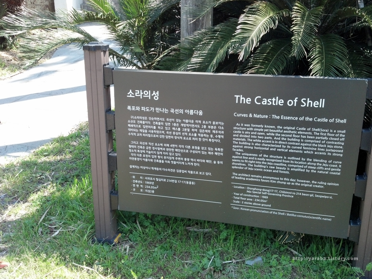 1969년에 세워졌다가 2008년 서귀포시에서 매입하여 올레 안내소를 운영했고 안전문제로 폐쇄했다가 2018년 북카페로 다시 문을 열었다는 "소라의 성"입니다. 저희는 바로 앞에 있는 정자에 앉아서 점심 도시락을 먹으며 휴식을 취했다가 길을 이어 가기로 했습니다.
