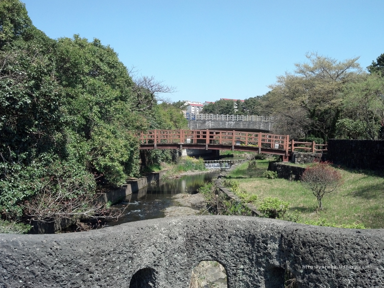 동홍리 지역을 지나기 때문에 '동홍천'이라 불리는 하천을 건너는 다리에서 바라본 풍경입니다. 동홍천은 정방폭포를 거쳐 바다로 가기 때문에 '정방천'이라 불리기도 했답니다.