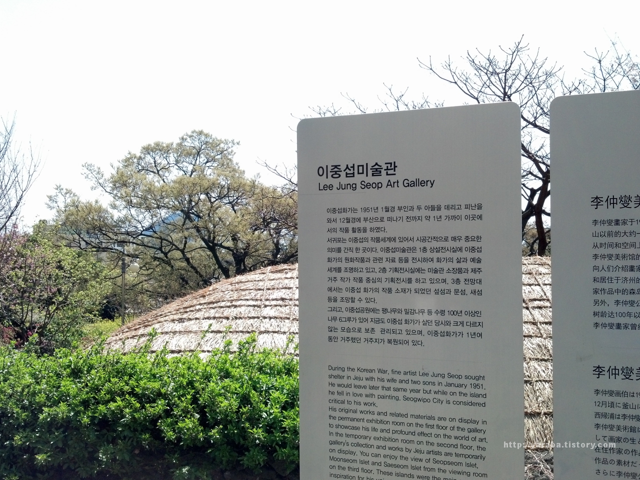 올레길은 소암기념관으로 이어집니다. 칠십리 시 공원에서 처음 만났던 "작가의 산책길"을 자세히 보니 이중섭 미술관과 소암 기념관은 바로 근처에 있는데 출발지와 종착지였네요.