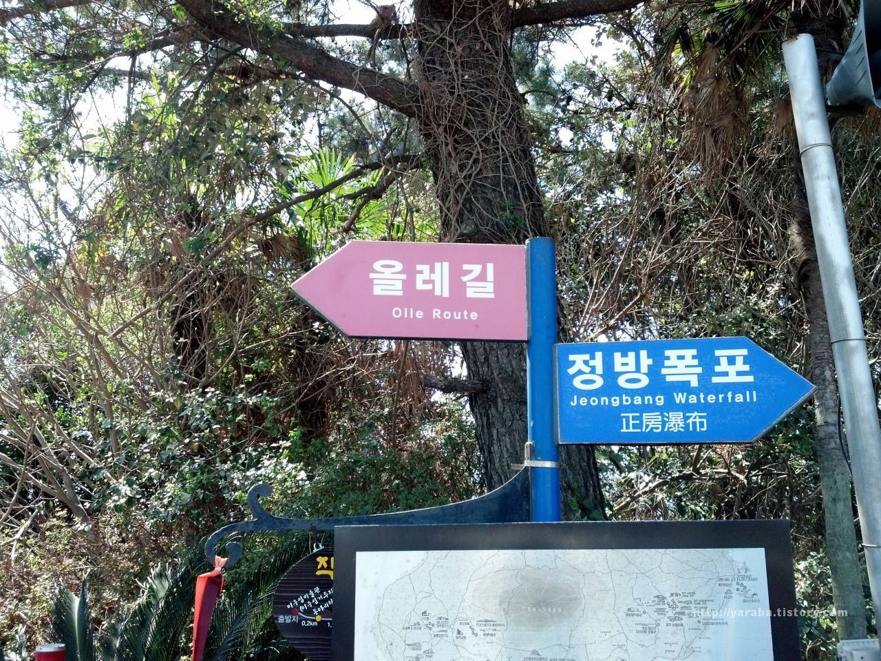 올레길은 2천 원의 유료 입장인 정방폭포를 거치지 않고 해안길을 따라 길을 이어 갑니다.