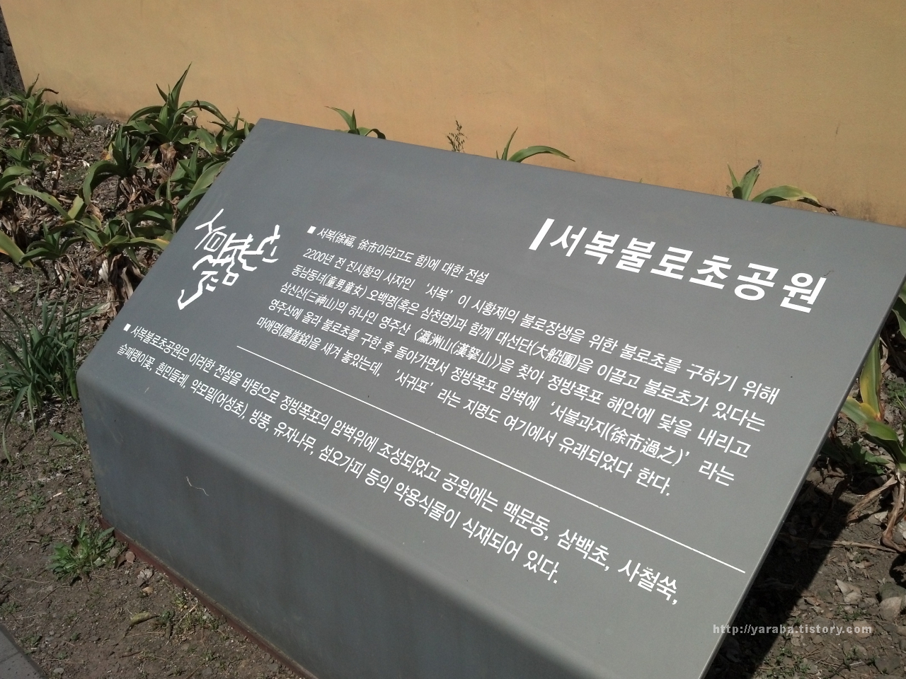 올레길은 진시황의 불로초를 찾아 이곳까지 왔었다는 서복을 기념하여 세웠다는 서복공원(徐福公園)을 지납니다. 서복 불로초 공원이라고도 부른답니다.