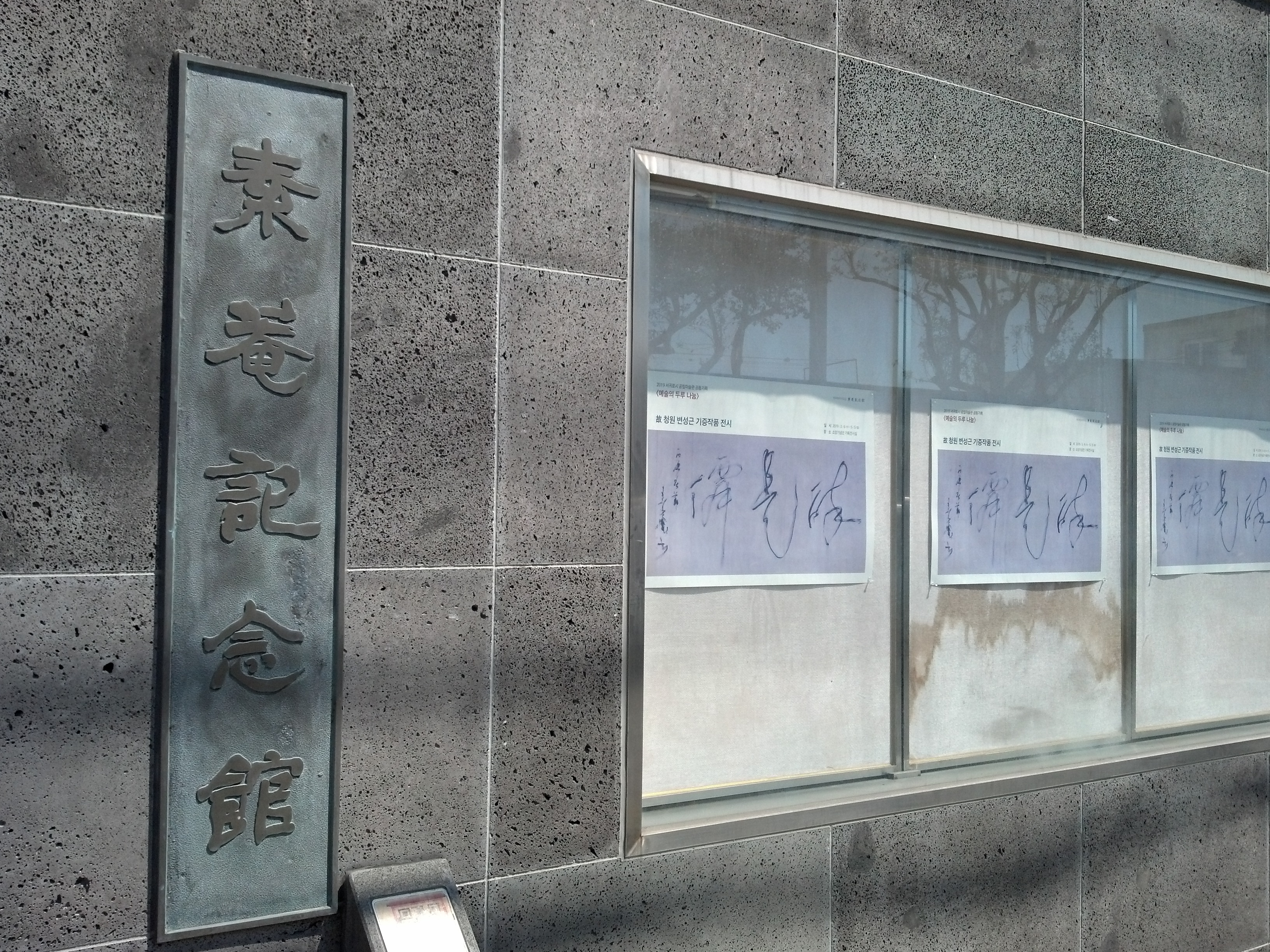 소암 기념관은 서예가인 소암 현중화 선생을 기리며 2008년에 세워진 건물로 제주도의 건축 문화 대상을 받은 건물답게 계단을 오르면 돌다리가 있는 연못과 오랜 팽나무를 그대로 살린 설계 등이 시선을 끄는 건물이었습니다.