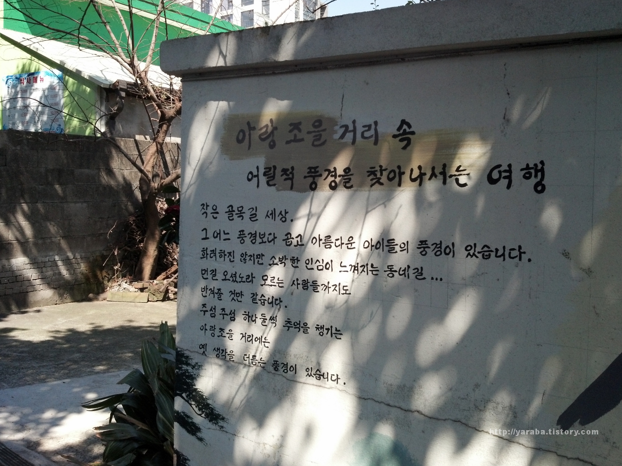 올레 여행자안내센터를 떠나서 올레 6코스를 역방향으로 걷기 시작합니다. 올레 여행자안내센터가 위치하고 있는 충정로를 따라서 직진하다 보면 알아두면 좋다는 "아랑 조을 거리" 2번가 입구도 지나고,