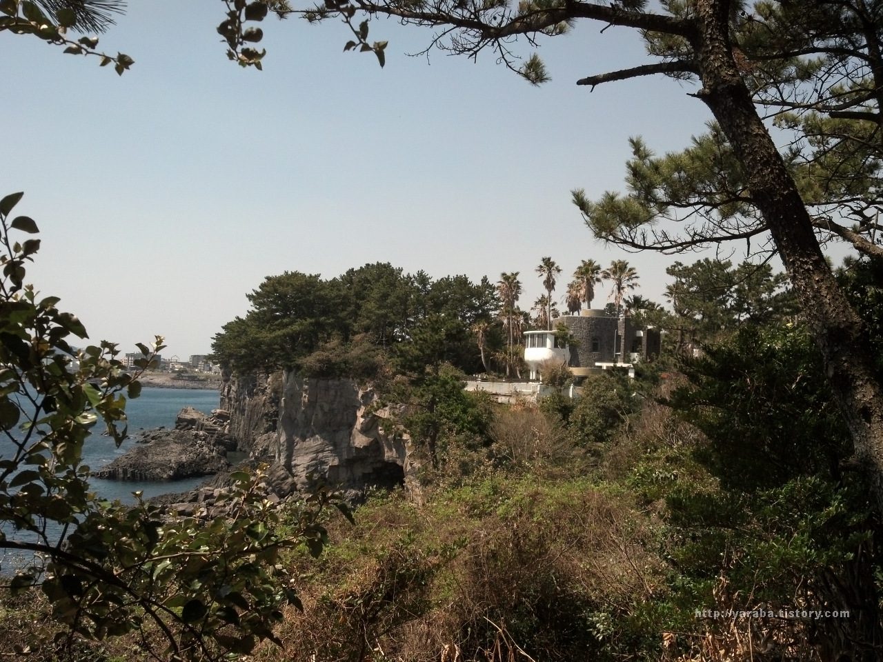 반대쪽 칼호텔이 있는 방면으로는 아름다운 해안과 섶섬의 광경이 펼쳐집니다.