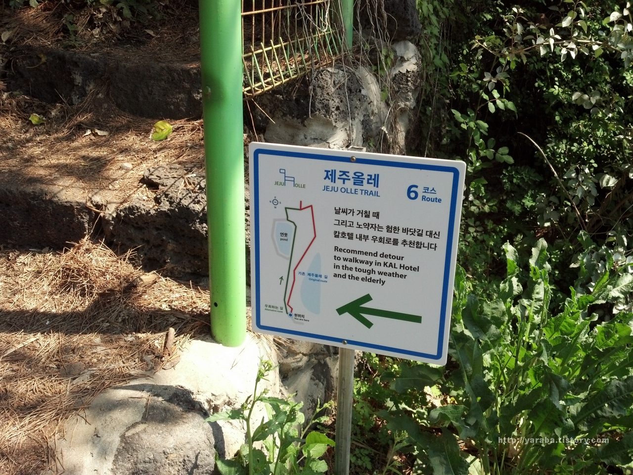 올레길은 칼호텔 내부를 통해서 가는 길과 해변을 통해서 가는 길로 나누어집니다.