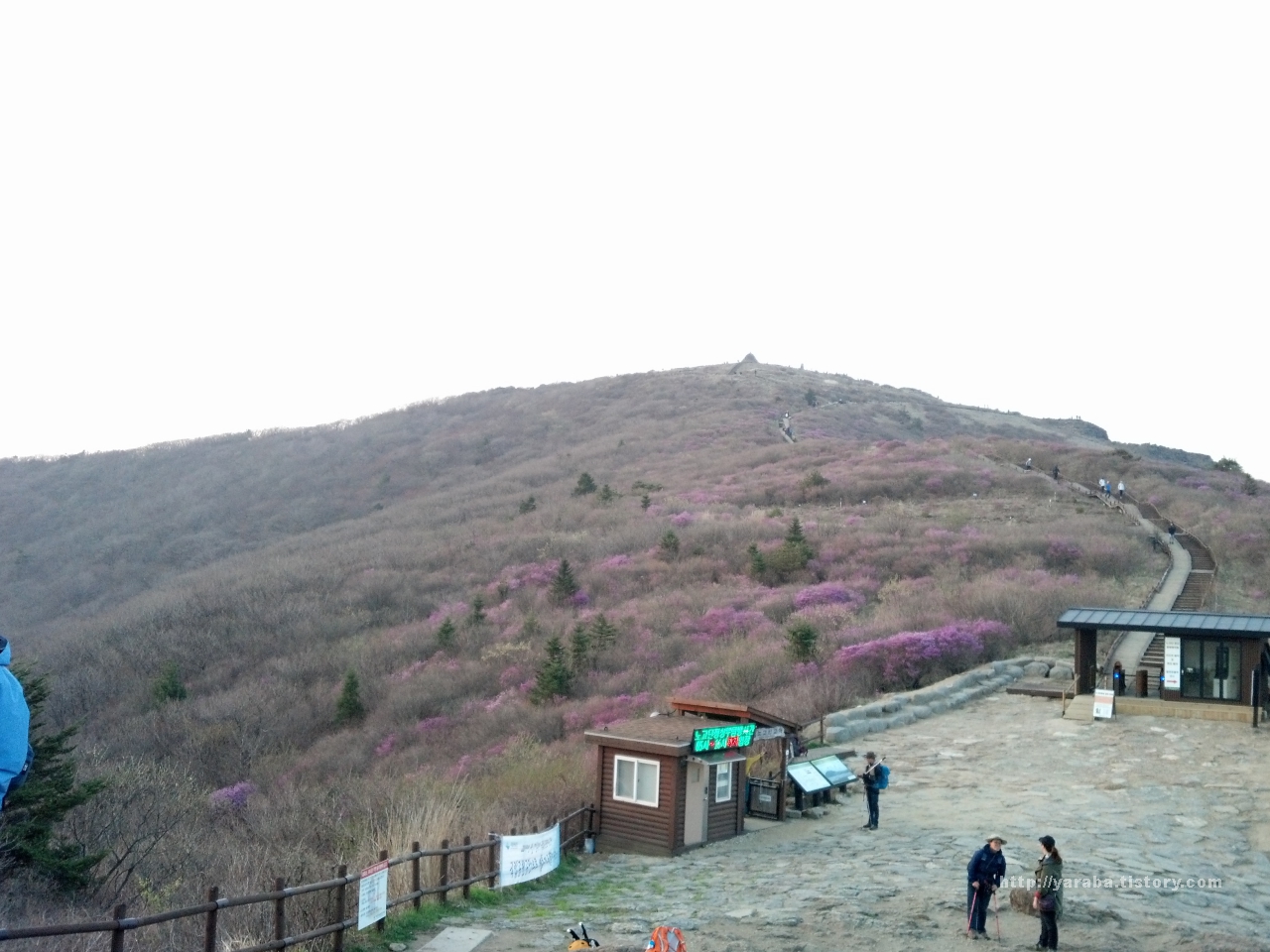 연분홍빛 진달래가 헉헉 거리며 걸어온 상춘객을 맞아 줍니다. 맑은 분홍빛의 진달래가 정말 이쁩니다. 한 시간여의 걷기이지만 등에는 땀이 배이고 얼굴은 붉게 상기되는 몸을 변화로 지리산 등반의 맛을 보기 시작합니다.