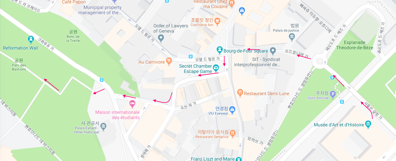 종교 개혁 박물관(Musée International de la Réforme)은 16세기부터 시작된 종교 개혁과 관련한 다양한 자료를 전시하고 있는 공간입니다. 생 피에르 성당의 지하 유물지와 지하 통로로 연결되어 있습니다. 오전 10시부터 오후 5시까지 개방하고 월요일에 휴관합니다. 입장료는 13 CHF.