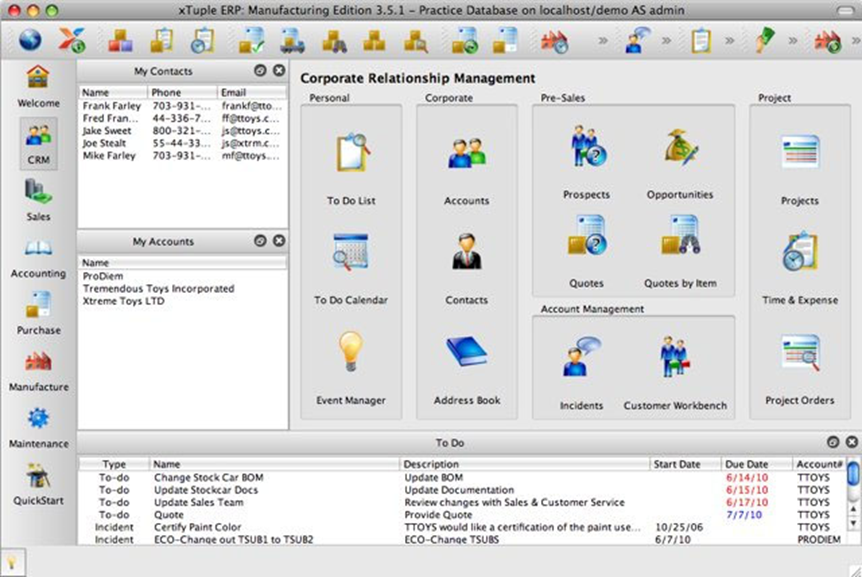 이렇게 ERP 자체개발과 상용 제품 도입 등에서 발생할 수 있는 여러 가지 문제를 해결할 수 있는 대안이 바로 오픈 소스 ERP/CRM 솔루션을 적용하는 것입니다. 사용자는 비용을 지불하지 않고 바로 코드를 확보하여 패키지에서 제공하는 기능들이 자신의 기업에 맞는지 확인해 볼 수 있으며, 만약 대부분의 기능이 자신의 기업에 맞다면 상용 제품 설치와 같이 빠른 설치가 가능할 것이며, 전혀 맞지 않다면 바로 포기해도 비용적 손해를 감수하는 일은 없는 것입니다. 수정이 필요하다면 직접 필요한 기능들을 적용할 수 있으며 개발 커뮤니티를 통해 다양한 도움을 받을 수도 있습니다. 소스 코드가 있기 때문에 장기적인 지원 서비스 부재에 따르는 위험성도 줄일 수 있습니다.
