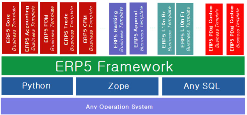Python-Zope기반의 ERP. 파이썬 기반이므로 플랫폼에 제약이 없는 장점이 있습니다. 에어버스를 비롯한 기업과 다양한 조직에서 도입한 ERP.