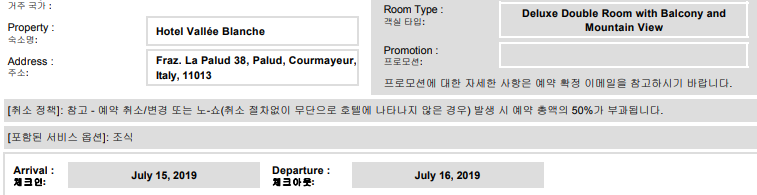 저희가 묵을 호텔 발리 블랑쉬 (Hotel Vallée Blanche, http://www.hotelvalleeblanche.com/en/)는 오후 3시부터 체크인이고 조식 포함 조건인데 아침 식사는 8시에서 10시 사이에 가능하다고 합니다. 프랑스와 이탈리아를 이어주는 몽블랑 터널(Mont Blanc Tunnel) 입구 근처에 위치한 숙소입니다. 3일간 산장에서 묵느라 피곤해진 몸과 마음을 무료 WiFi와 충분한 샤워로 풀어주는 시간이 될 것으로 기대합니다. 비용을 지불하는 세탁 서비스가 있다고 하는데 방법은 알아보아야겠습니다.