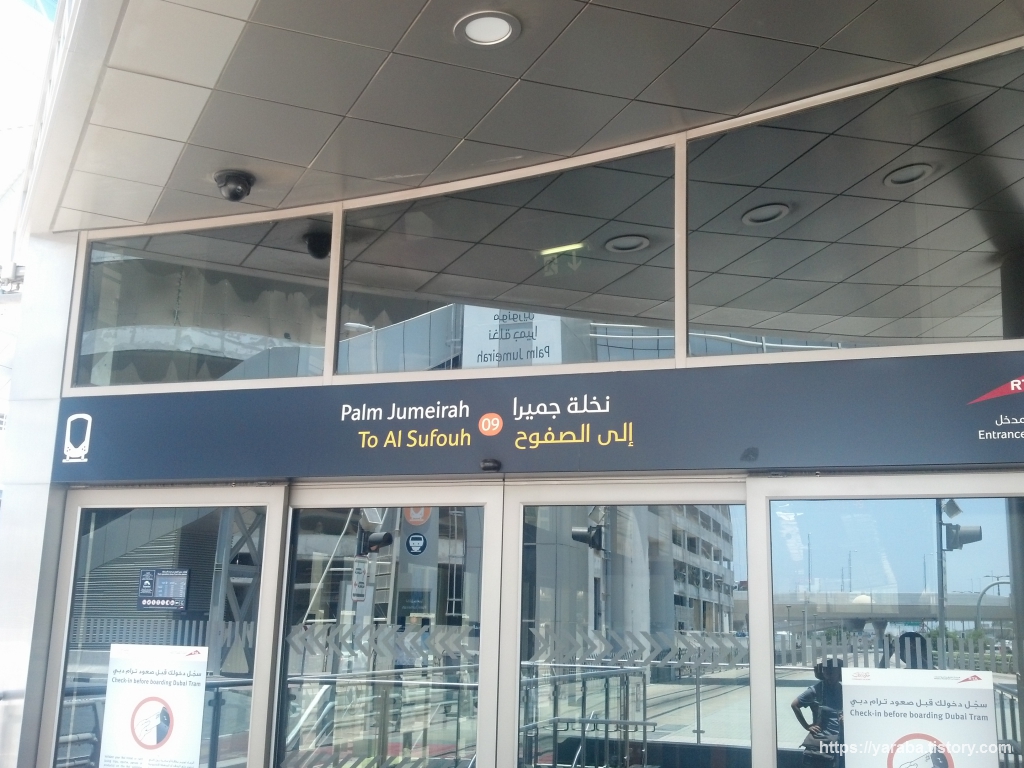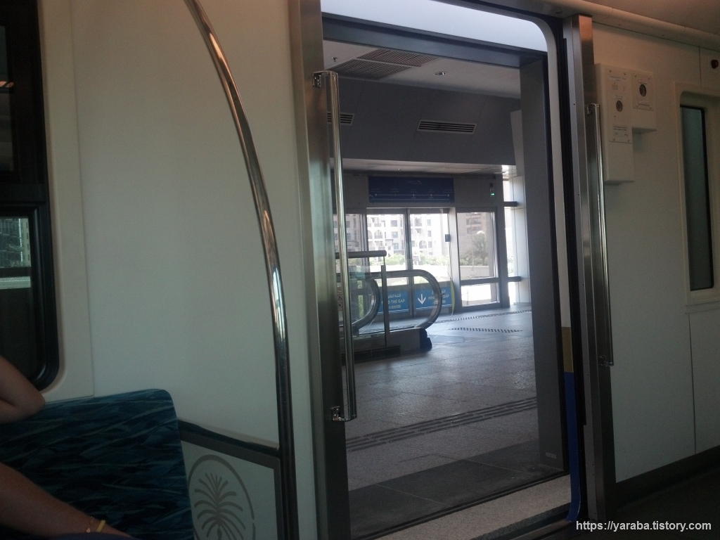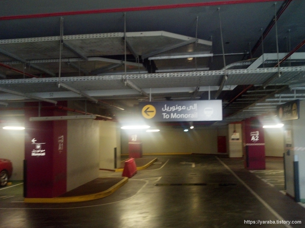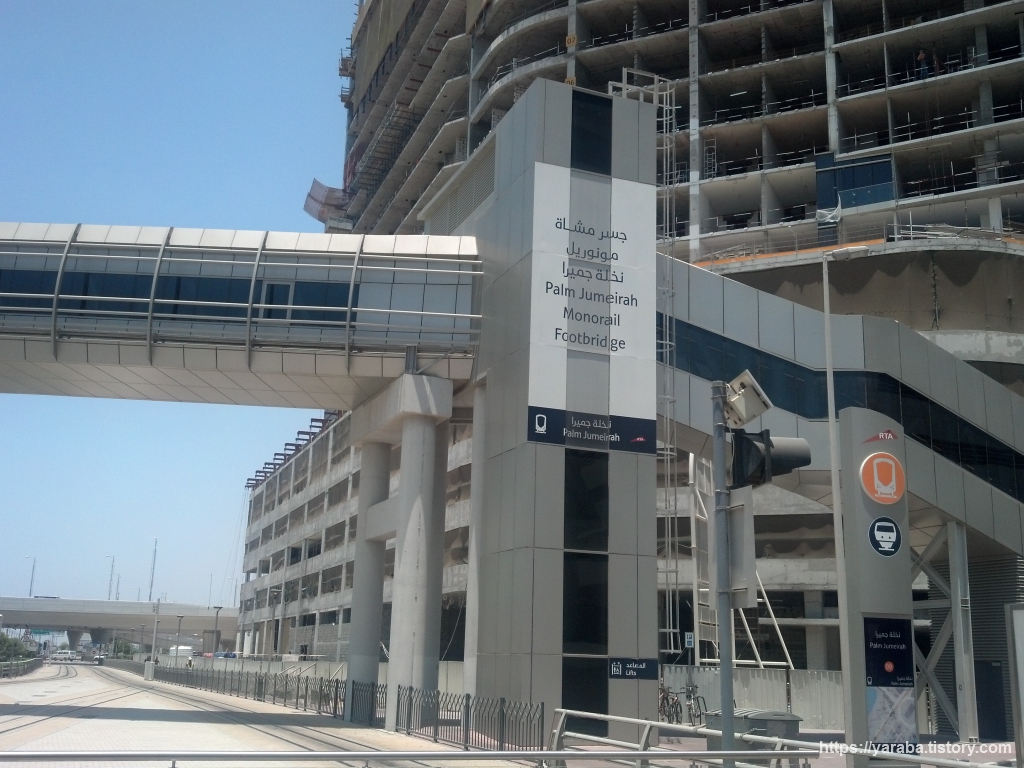 트램역에서 내리면 팜 주메이라(Palm Jumeirah1) 트램역 앞에 보이는 보행자용 육교를 통해서 모노레일 역사로 이동할 수 있습니다.