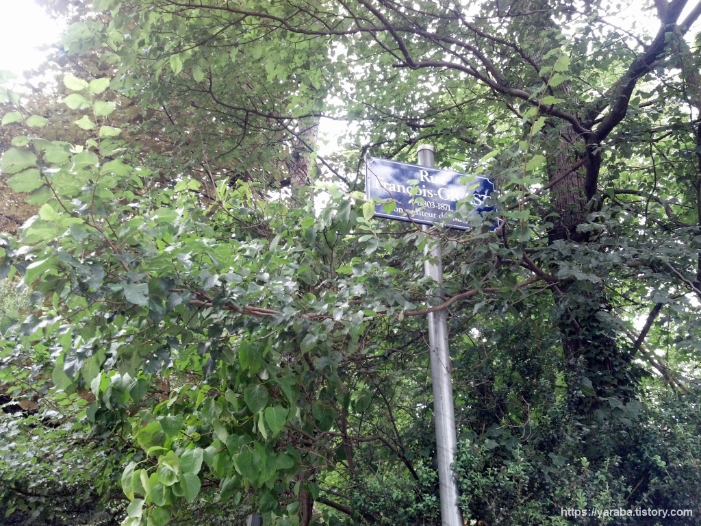 무거운 배낭을 메고 언덕길을 오르는 것은 결코 쉬운 일이 아닙니다. 산에 오르는 것도 아닌데 벌써부터 힘에 부치니 앞으로가 더 캄캄합니다. 아무튼 오르다 보니 나무 숲이 우거진 공원 지대에 도착했습니다. 문제는 출입구 방향을 정문 반대편으로 잘못 파악해서 엉뚱한 길로(Rue François-Grast)로 오고만 것입니다.