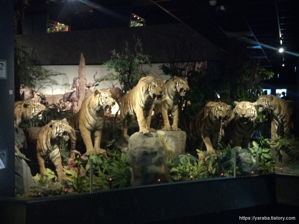 호랑이 박제들은 하나같이 으르렁 거리고 있네요.