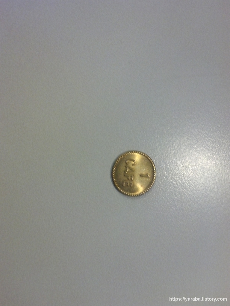 사물함은 없지만 다행히 카페가 있는 휴게실이 있어서 음료나 간식을 사 먹을 수 있었는데 저희는 3 프랑 하는 커피를 하나 사 먹으면서 잠시 쉬기로 했습니다. 커피가 3프랑이라는 메뉴판을 보고 직원에게 현금을 주었는데 점원은 잔돈과 함께 "1 CAFE"라 적힌 동전을 하나 주는 것이었습니다. 스위스 프랑도 아니고 유로도 아닌 생전 처음 보는 동전에 이건 뭐지! 하는 당황함이 있었는데 알고 보니 이 동전을 커피 머신에 넣으면 커피를 추출할 수 있는 것이었습니다. 오호!