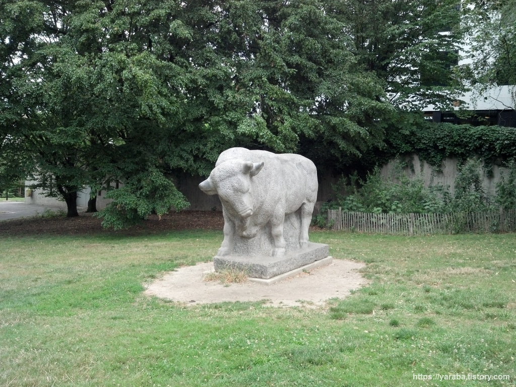 박물관 앞마당에 놓인 황소상(Luc Jaggi, 1947)