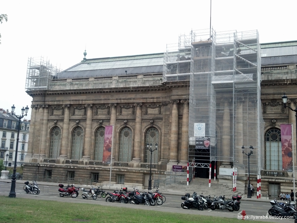 TMB(뚜르 드 몽블랑) 걷기에 보너스처럼 주어진 제네바 시내 걷기는 자연사 박물관(Muséum d'Histoire Naturelle)과 예술 및 역사박물관(Musée d'Art et d'Histoire)에서 버스 시간이 야속할 정도로 유익한 시간을 선물해 주었습니다. 아무리 바쁘더라도 예술 및 역사박물관 바로 앞에 있는 옵세흐바뚜와흐 공원(Parc de l'Observatoire)에서 잠시 쉬어 가기로 했습니다. 위의 그림은 공원 입구에 있는 조각상입니다.