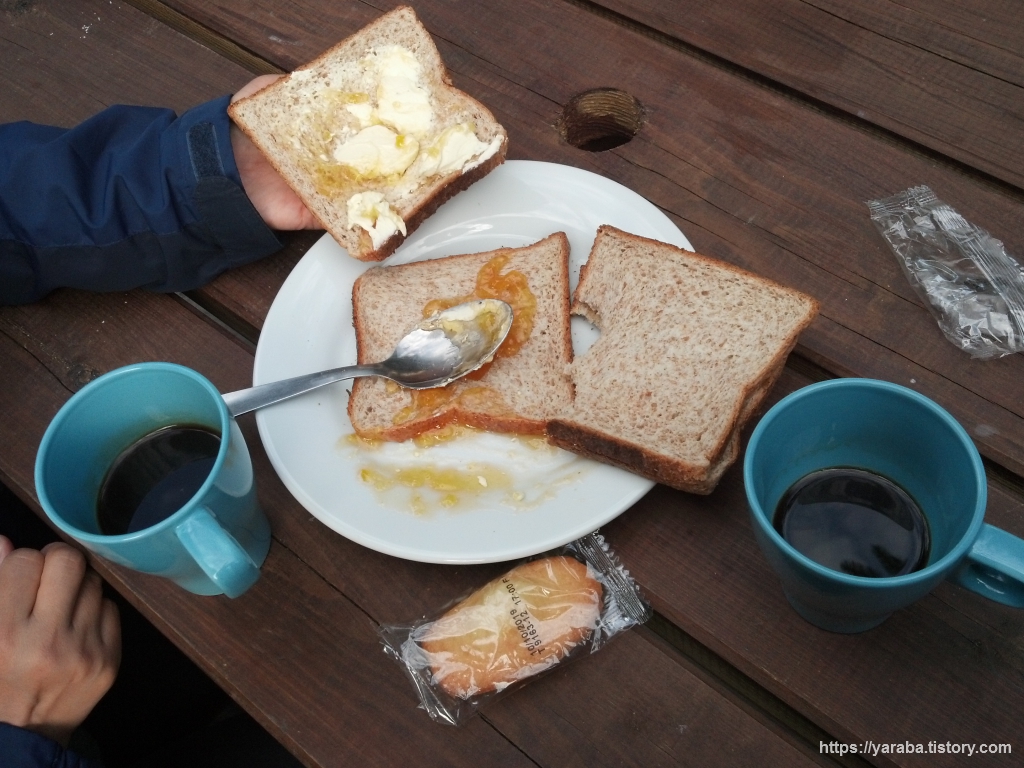토스트와 커피, 마들렌으로 먹는 아침식사입니다. 각자 알아서 자유롭게 챙겨 먹는 방식이기 때문에 조금 분주하기는 했지만 자신 취향대로 마음껏 먹을 수 있어서 좋았습니다. 아부다비, 두바이, 제네바에 이르는 동안 이틀 만에 여유 있게 누리는 아침입니다.