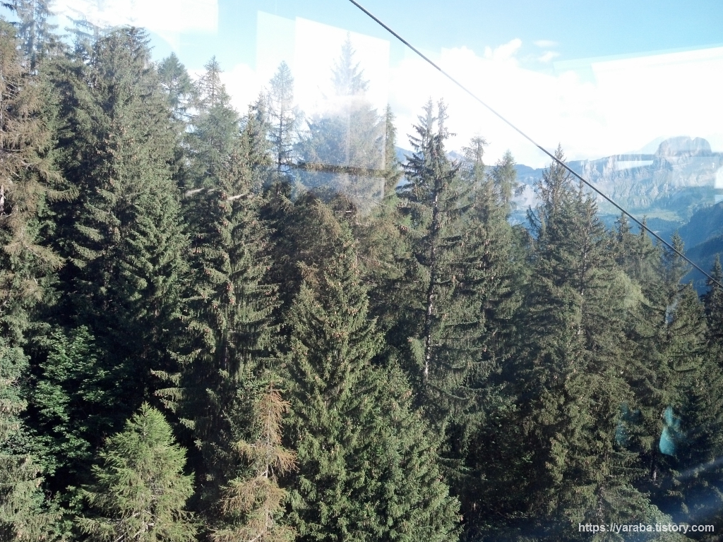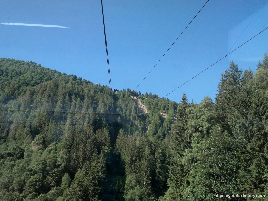 새파란 하늘을 향해 드디어 케이블카가 움직입니다. 케이블카 차창으로 비치는 풍경은 가히 탄성을 자아낼 만합니다.