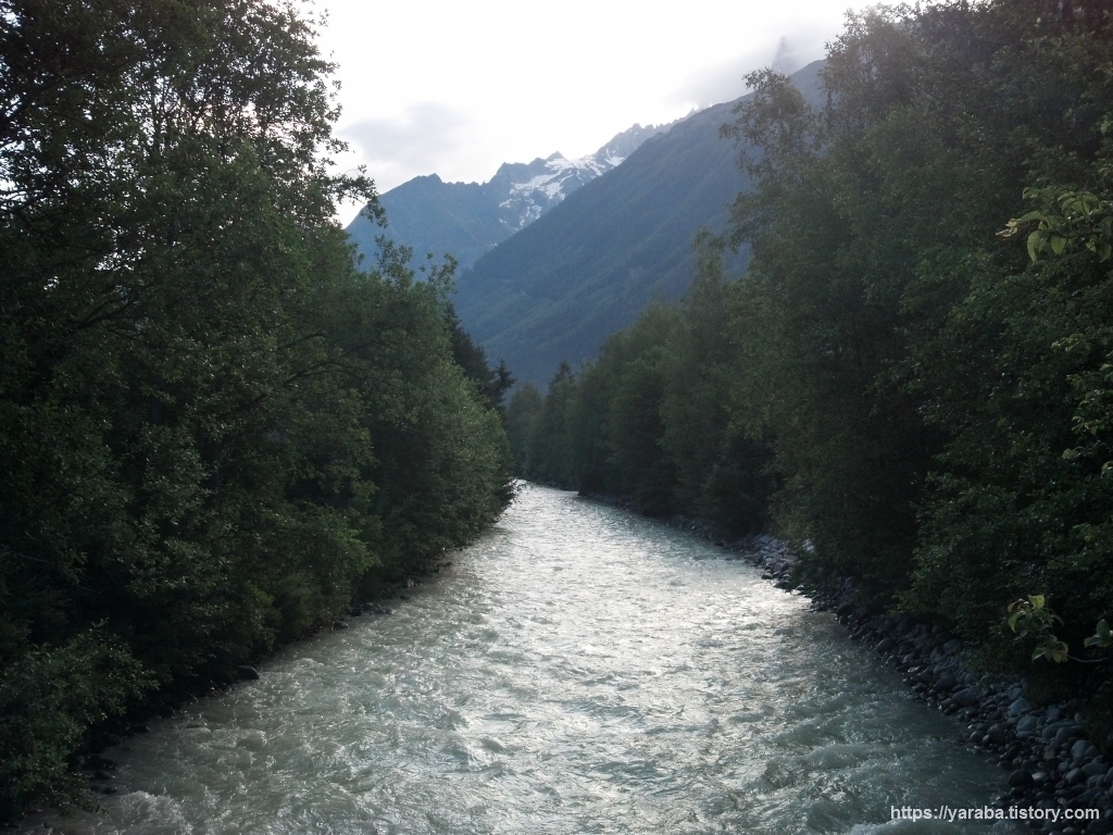 시내를 가로지르는 아르브(Arve) 강을 건넙니다. 빙하수가 모여 이렇게 무섭게 흘러 내려간다는 것 자체가 생경스러운 광경입니다.