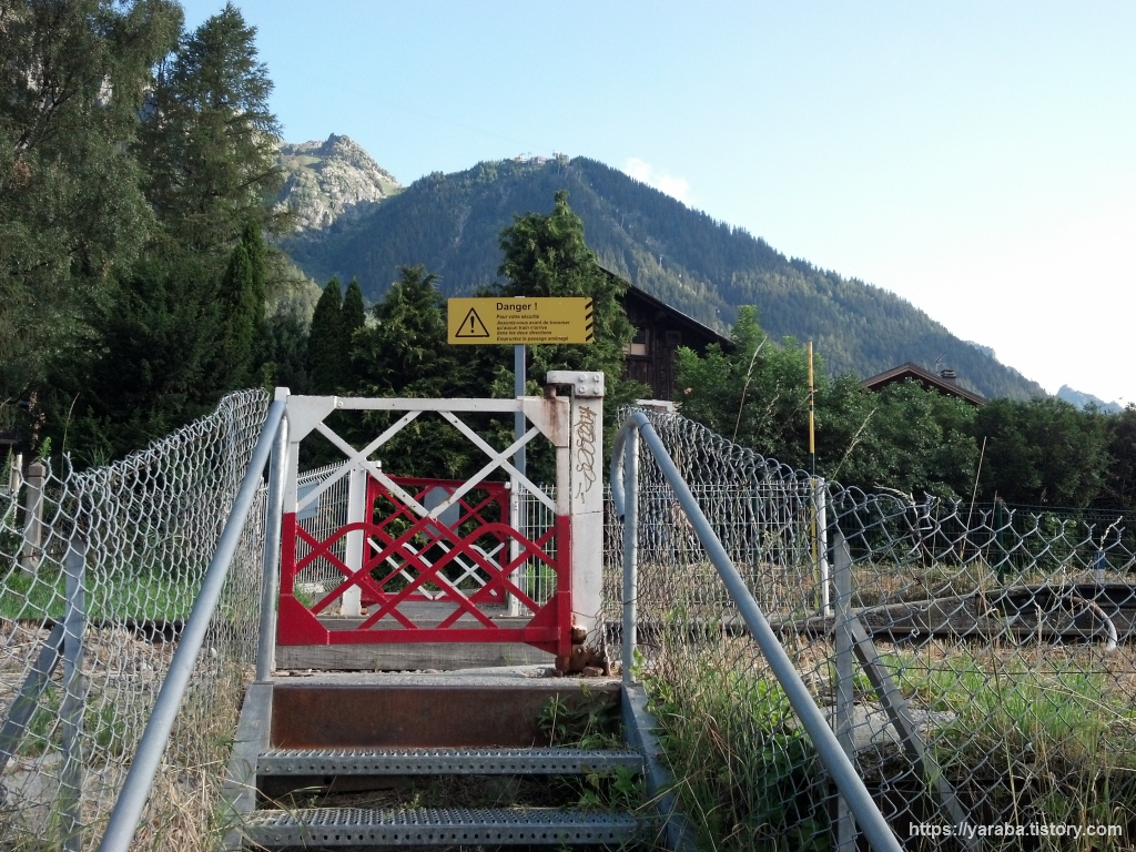 버스 정류장으로 가려면 레 무슈(Les Moussoux) TER역을 건너가야 하는데 좌측으로 돌아가거나 위의 그림처럼 선로를 가로지르는 보행자용 통로로 조심해서 건널 수도 있습니다. 저희는 보행자용 통로를 이용했습니다.