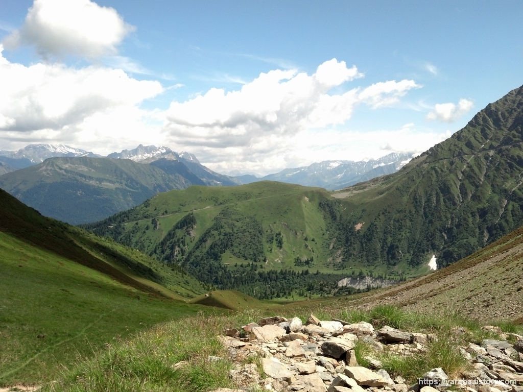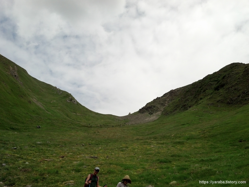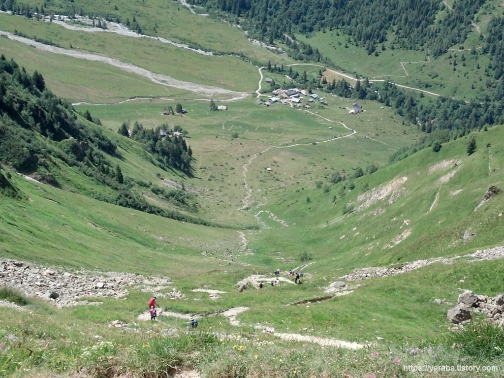 휴망 계곡(Combe des Juments)과 트리코 계곡(Combe de Tricot)을 거쳐 우리가 걸어 올라온 길. 올라와서 바라보면 까마득할 뿐입니다. 우리의 인생길도 비슷하죠. 순간순간 내 발 앞을 바라보며 오르막을 오르듯 인생의 문제 하나하나에 집중하다 보면 어느새인가 우리가 지나온 길은 그것이 기쁘던 슬프던 기억 속에서 까마득해집니다.