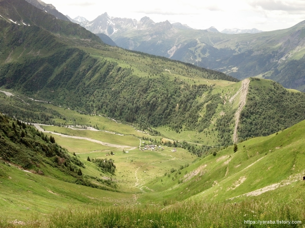 날씨가 워낙 좋아서 먼산까지 막힘이 없습니다. 산 아래 미아주 산장을 지나 바로 앞에 보이는 언덕을 오르면 오늘의 목적지인 트휙 산장(Auberge du Truc)이 있습니다. 목적지가 보이니 마음에 한층 여유가 생깁니다.