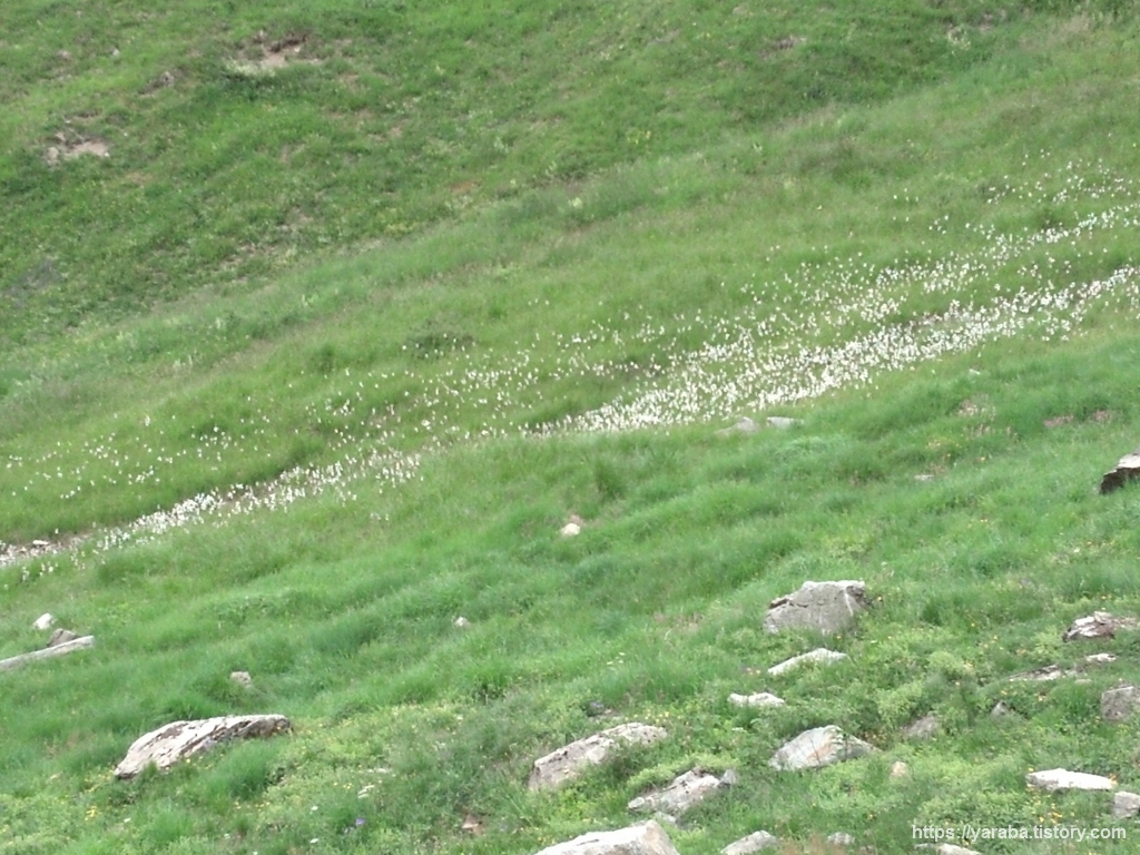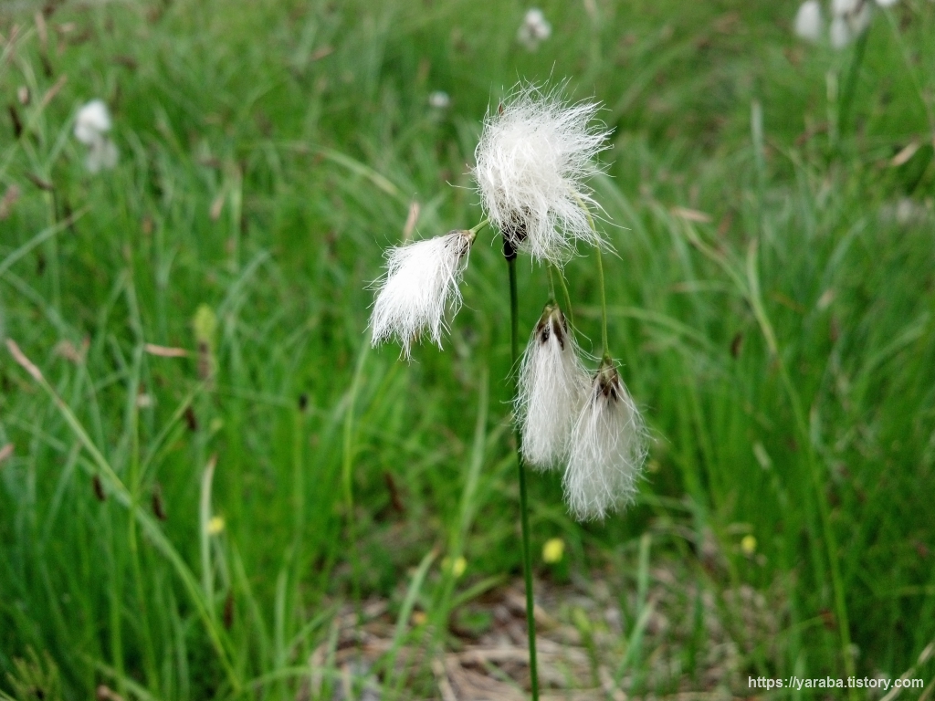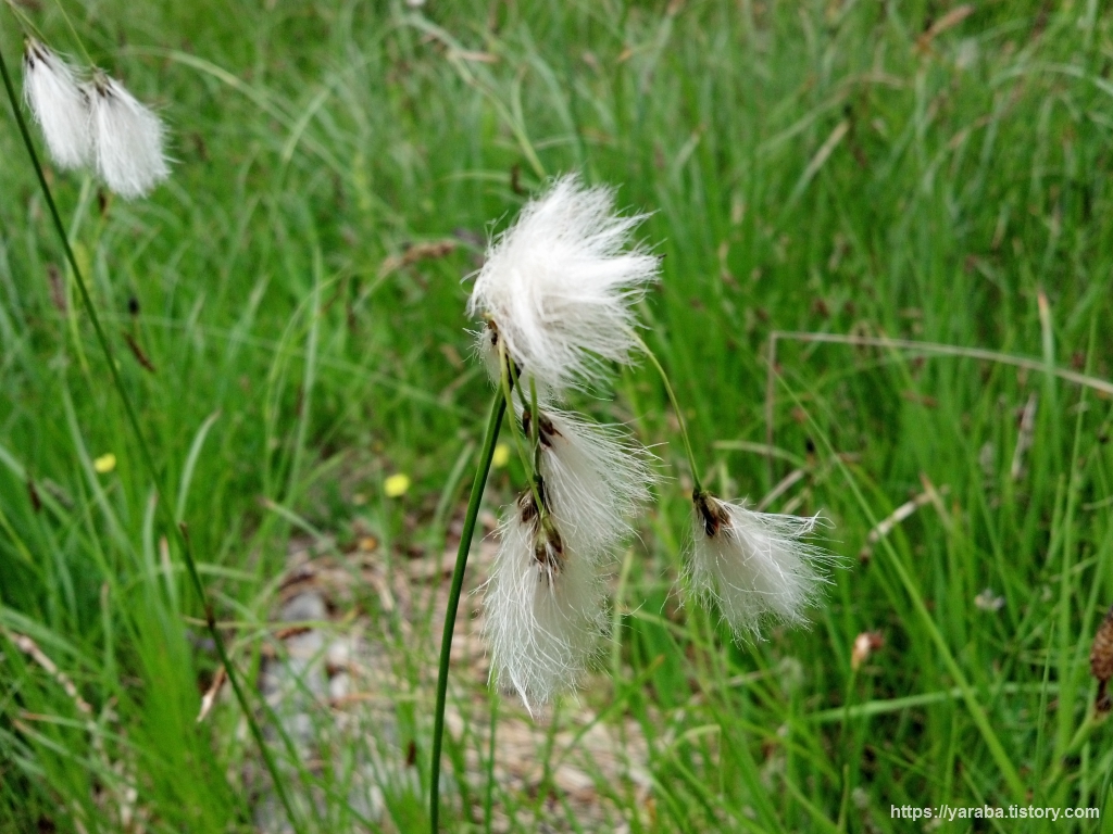 정말 특이하면서도 아름다운 황새풀(Eriophorum)입니다. 황새풀도 여러 종이 있는데 우리는 황새의 자태를 닮았다 해서 황새풀로 이름을 지은 모양인데 영어권에서는 목화를 닮았다고 코튼 글라스(Cotton Grass)라 한답니다.