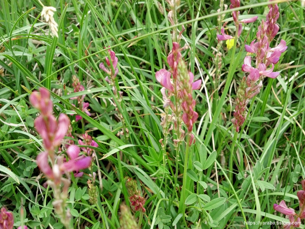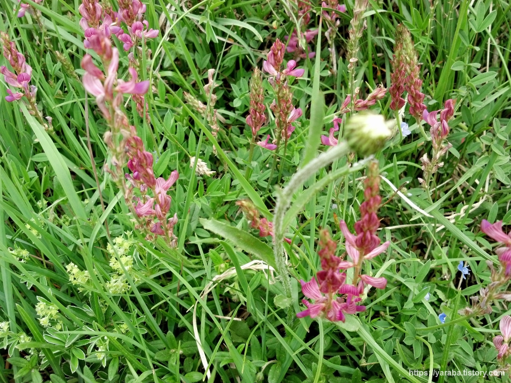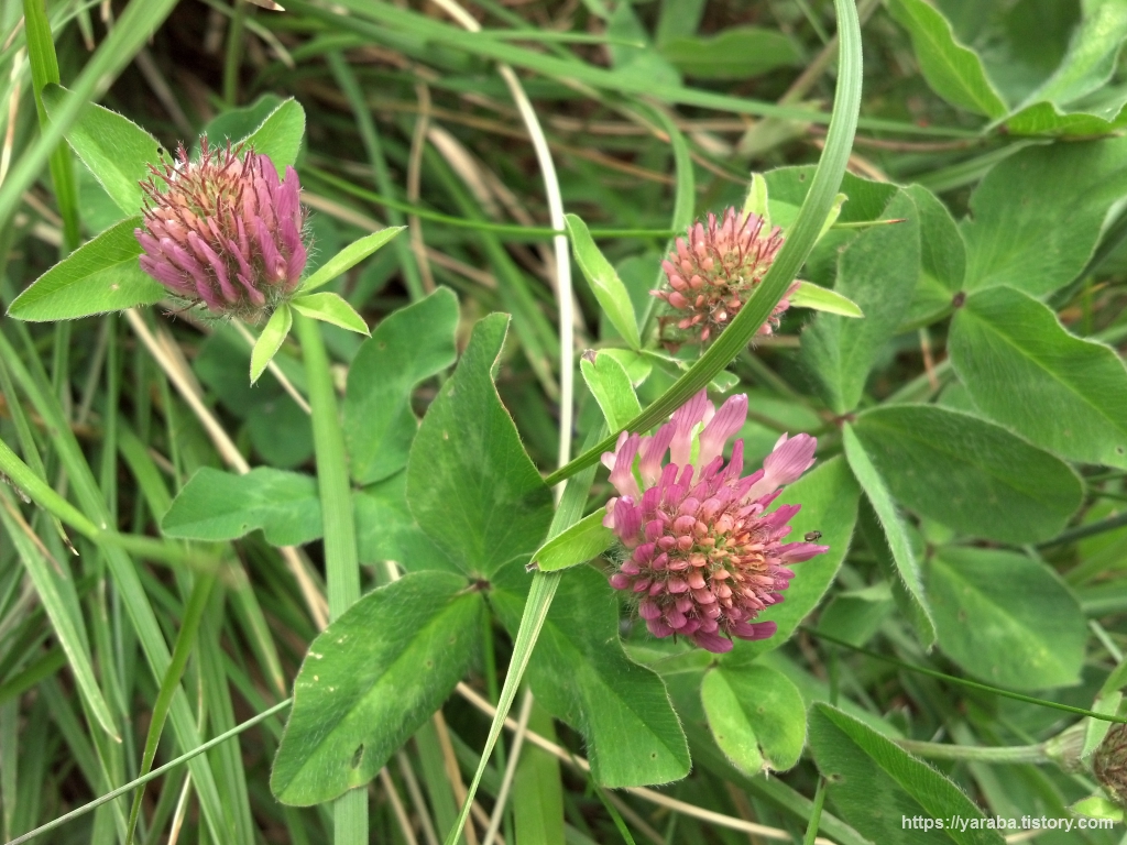 우리 들판에서는 흰색 꽃을 피우는 토끼풀이 대부분인데 여기는 보라색 클로버 꽃이 많네요.