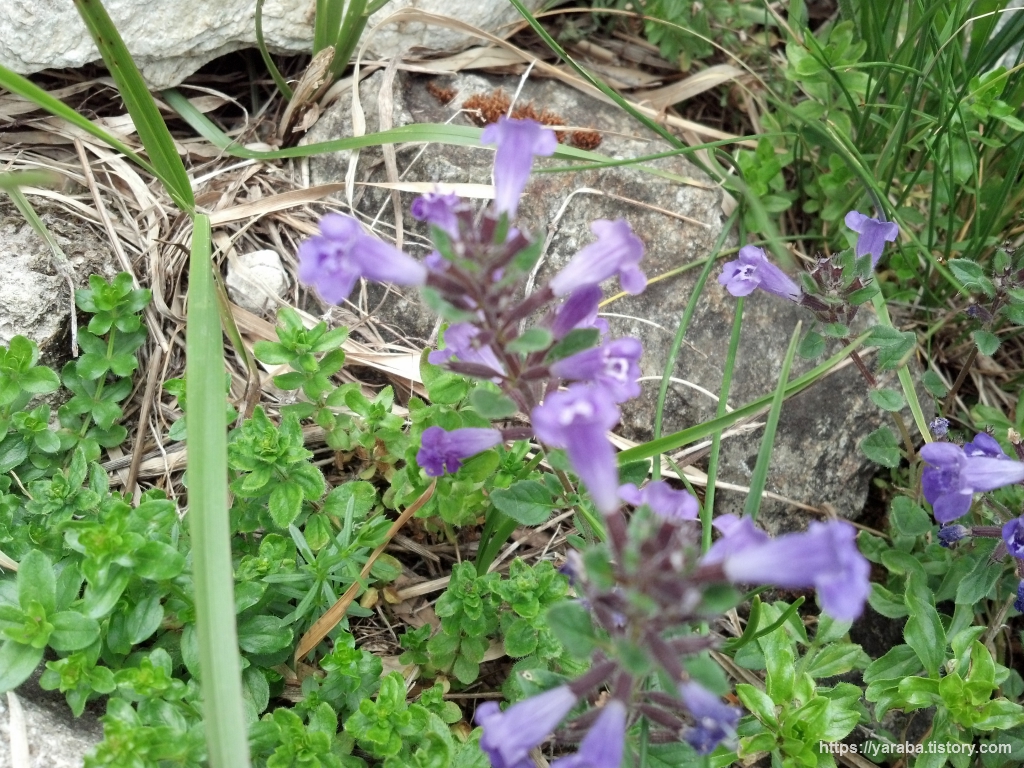 보라색 줄무늬를 가진 작은 꽃들도 풀숲에서 존재감을 뽐냅니다. 소가 올라와서 몇입 먹으면 꽃이야 없어지겠지만 그때까지라도 파이팅! 하며 길을 내려갑니다.