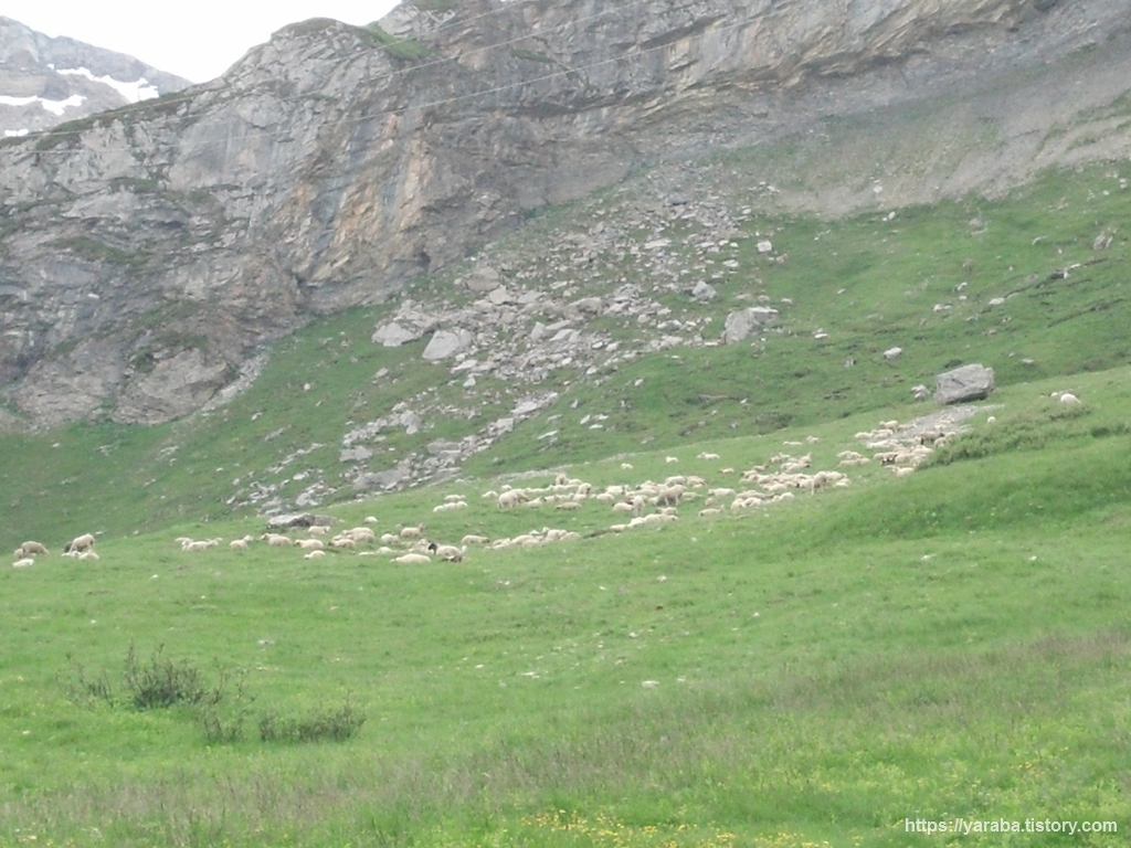 조베 평원 위로는 양 떼들을 방목하고 있었습니다. 커다란 소만 보고 워낭 소리만 듣다가 양무리를 보니 반갑기 그지없습니다. 커다란 소들은 전기가 흐르는 가느다란 전선 하나로 목책을 세우는 반면 양 울타리는 망 모양의 것을 둘러친 모습이 재미있기도 했습니다.