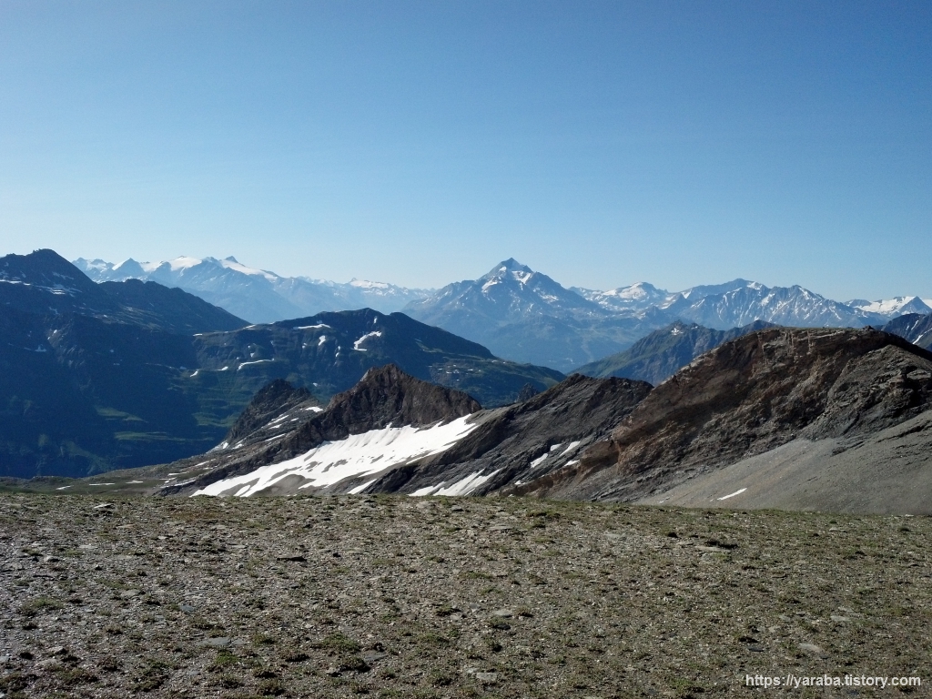 깎아지른 산등성이를 걷는 짜릿함과 스릴이 있는 길이지만, 만약 날씨가 좋지 않았다면? 어우! 생각만 해도 참사가 아닐 수 없습니다. 푸흐 북쪽 봉우리(Tete Nord Des Fours, 2,756m) 근처에 도달하면 그야말로 스펙터클한 전경을 만나게 됩니다. 바위와 눈길을 거쳐 올라온 보람을 느끼기에 충분합니다.